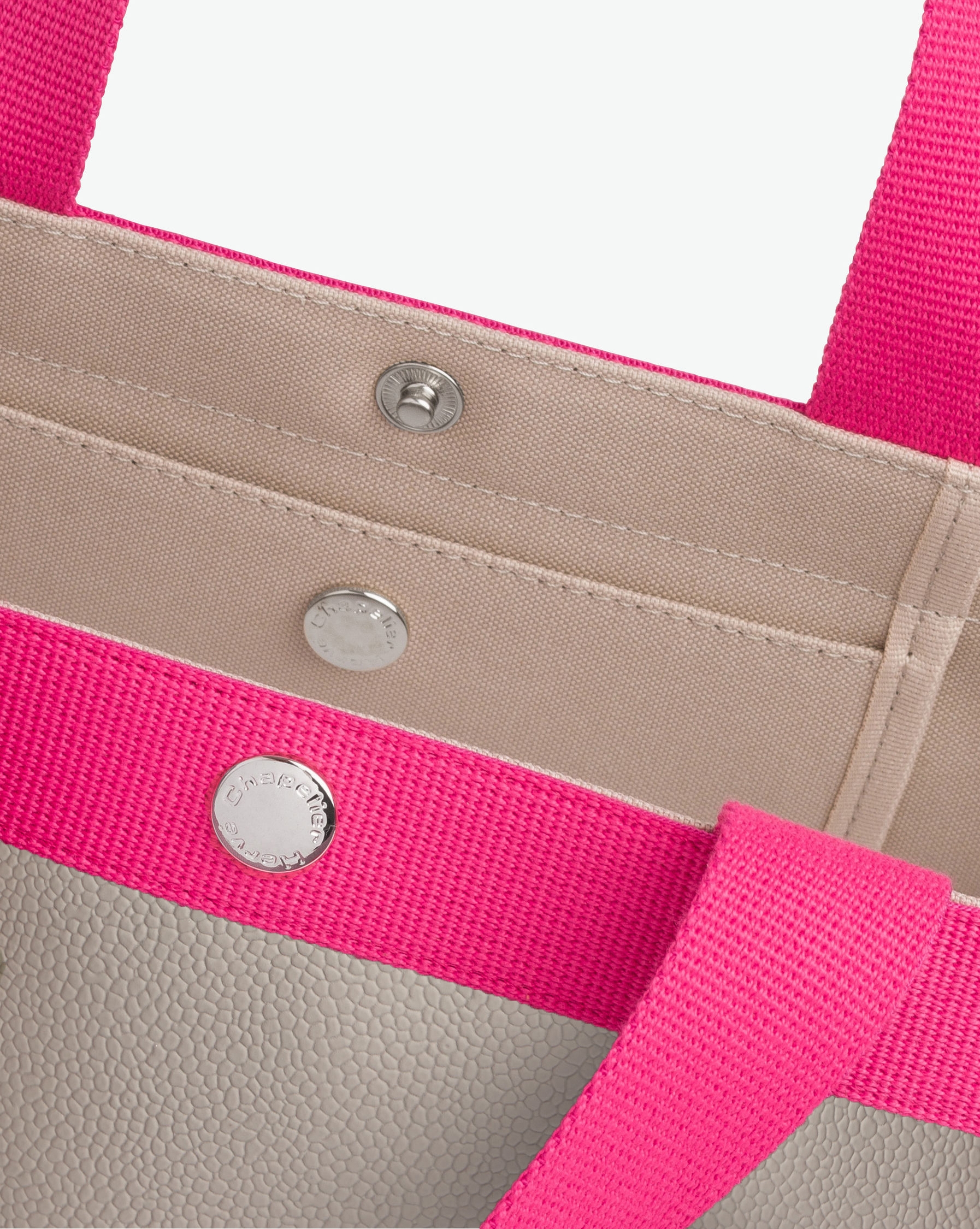 Poignées polyester, sangle polyester, fermeture pression (pas de fermeture à glissière), poche intérieure